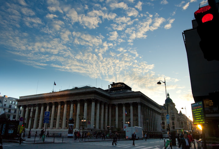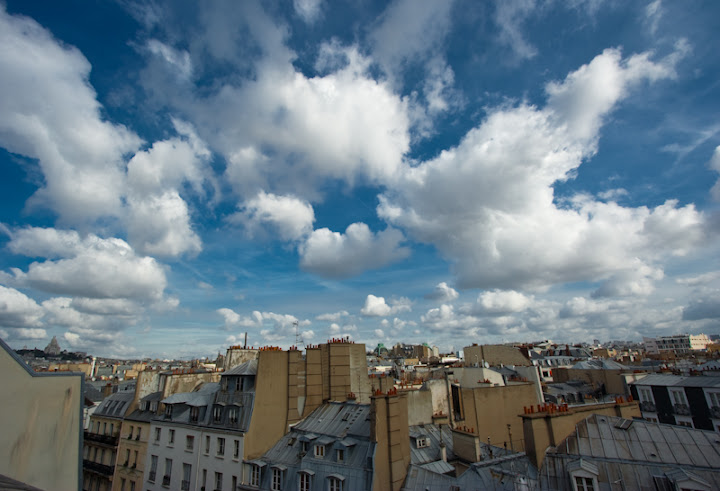 Уже совсем рассвело. Мотостоянка заполняется. Глазею на биржу, улицу Монмартр, крыши с оранжевыми трубами и Сакре-Кер на холме.