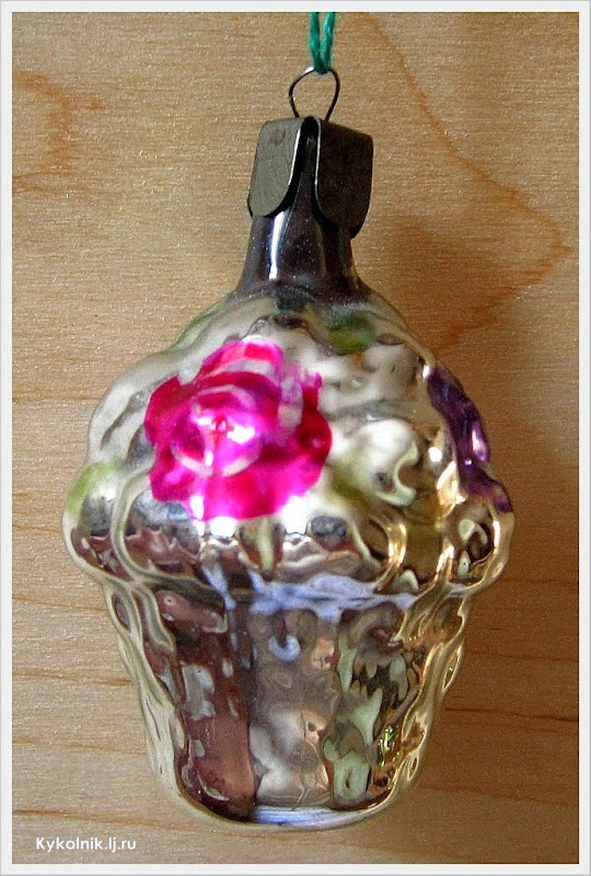 Корзинка с цветами середина 60-х. Про эту корзинку надо сказать отдельно. Это была самая-самая любимая игрушка. Она мне казалась неземной красоты! Я тайком от всех размещала её на нижней еловой лапе, и бегала утром-вечером любоваться. Нацеловывая её, шепотом просила каждый раз исполнить какое-нибудь желание :))