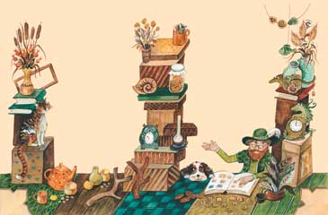 Перья, зёрнышки и стружки.