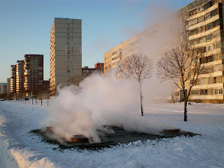 Застывшая, освещённая солнцем земля, нежные краски. А из-под неё бьёт едкий канализационный пар и наряжает деревья в белый ядовитый иней. А.С. Пушкин: