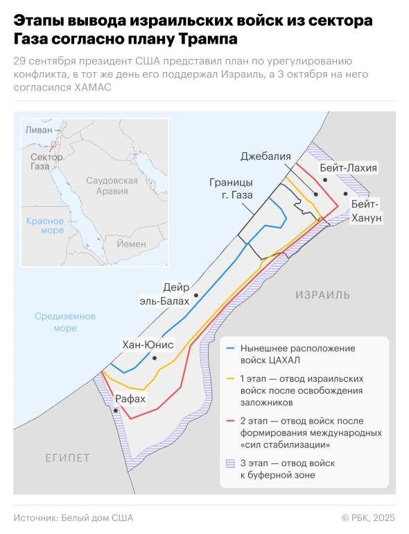 Полное переформатирование проклятия Святой Земли: судьба Газы после 2 лет войны и план Трампа Начало тут https://alex-rozoff.livejournal.com/720014.html "4000-летнее фантомное проклятие Святой Земли: как все было на самом деле и почему именно так" Это эссе было опубликовано 15 октября 2023, через неделю и день после массированного вторжения боевиков ХАМАС (фактического правительства полосы Газа) на территорию Израиля. Прошло ровно 2 года после вторжения, случилось несколько скоротечных локальных войн, изменивших политический ландшафт региона. В частности, война 27 ноября - 8 декабря 2024 привела к падению режима Асада и фактического распада Сирии, как государственной формации. Теперь новый витог развития событий, известный как "план Трампа" Графическ он выглядит так  (источник https://www.rbc.ru/politics/07/10/2025/68e3ecec9a7947daad6ef0fc ) Конспективно план следующий: 1) прекращение огня в Газе сразу после согласования плана всеми сторонами 2) освобождение всех оставшихся у ХАМАС 48 заложников (живых и погибших) в течение 72 часов после согласования плана 3) ответное освобождение Израилем палестинских заключенных, в том числе 250 отбывающих пожизненное заключение; 4) создание временного правительства из палестинских «аполитичных технократов», подконтрольного новой международной структуре, которую создадут США при поддержке арабских и европейских стран 5) развертывание в Газе «международных стабилизационных сил», которые возьмут на себя обеспечение безопасности в Газе в процессе поэтапного вывода израильской армии (см. графическую схему)6) дерадикализация населения Газы, разоружение ХАМАС и амнистия для боевиков, которые откажутся от вооруженной борьбы. Тем членам группировки, которые захотят покинуть Газу, будет обеспечен безопасный проезд в принимающие страны 7) увеличение поставок гуманитарной помощи, восстановление критической инфраструктуры и разбор завалов в Газе 8) привлечение инвестиций, создание рабочих мест и особой экономической зоны с пониженными пошлинами для вовлеченных стран. На сегодняшний день п.п. 4 - 6 не устраивают группировку ХАМАС (и не устроят, ведь локально-привязанная к Газе террористическая организация не сможет существовать при выполнении этих пунктов) ...Такие дела... | Monday, October 6th, 2025 | LJ.Rossia.org makes no claim to the content supplied through this journal account. Articles are retrieved via a public feed supplied by the site for this purpose. |