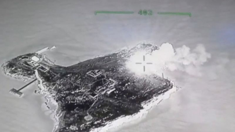 Сейчас Змеиный покрыт пожаром, раздаются взрывы.