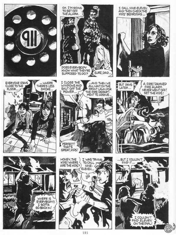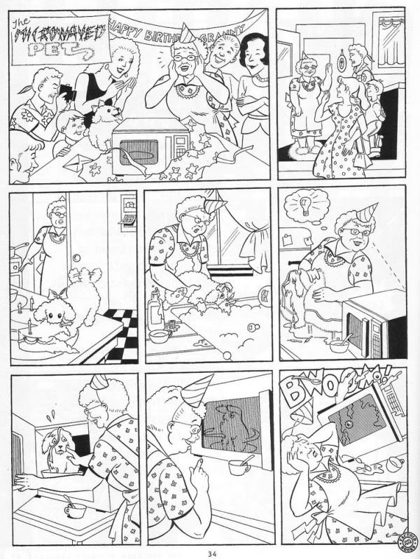 nemica@lj вспоминала о Чёрной Волге, ночном кошмаре польской детворы, но не единственно изделиями автопрома жив городской фольклор. Собственно, автор книги, профессор университета в Юте Ян Гарольд Бранвенд, как раз и известен своими изысканиями в области историй, передаваемых из уст в уста (Friend-Of-A-Friend stories) в современном обществе – все те страшилки, события, о которых ваши знакомые слышали от своих знакомых, а теперь рассказали вам, местные предания и так далее. Для «Энциклопедии..», изданной в 2001 году, Бранвенд собрал две сотни таких побасенок, которые были воплощены в виде комиксов. Ниже приведено несколько примеров: