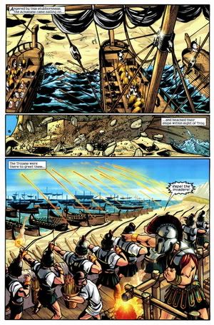 Ну и для тех, кто интересовался, - вышел второй из пяти комиксов про Троянскую войну. Греки наконец-то высадились у стен враждебного города, так что последующие части обещают быть особенно насыщенными на сражения (“Так лишь на битву построились оба народа с вождями, Трои сыны устремляются, с говором, с криком, как птицы” и т.д.):