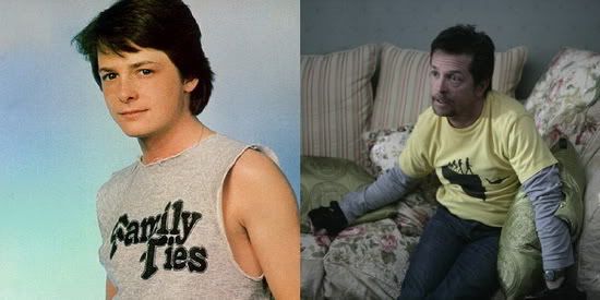 “Family Ties” (1982) “Rescue Me” (2009)Актёра Майкла Дж. Фокса, сегодня отмечающего свой 48-й день рождения, не назовёшь человеком особо лёгкой судьбы. Сын отставного военного и актрисы Майкл в детстве был очень увлечён хоккеем и даже думал связать свою судьбу с профессиональным спортом, но из-за маленького роста от подобных планов пришлось отказаться. Впрочем, его внешность через несколько сыграла Фоксу на пользу: в 15 лет он появился в главной роли в канадском сериале “Leo and Me”, причём на канале на эту роль изначально искали 10-летнего мальчика. По завершении съёмок Фокс окончательно решил, что хочет быть актёром, бросил школу и перебрался из Канады в Америку. Успех пришёл отнюдь не сразу – несмотря на несколько небольших ролей, Фокс залез в долги и хотел было вернуться домой, но тут поступило предложение о съёмках в ситкоме “Family Ties”. Роль Алекса Китона (изначально предназначавшаяся Мэттью Бродерику) принесла Майклу известность, признание у поклонников, три премии “Эмми” с “Золотым глобусом”, знакомство с Трейси Поллан, его будущей женой, и открыла ему все дороги. Параллельно с работой в сериале Фокс снимался в полнометражных фильмах – в частности, в 1985 году на экраны вышел фильм, ныне знакомый каждому любителю кинофантастики - “Back to the future”. Лента оказалась лидером по кассовым сборам, а следом появились ещё два продолжения, но радость была омрачена тяжёлым известием: в 1991-м году у Фокса обнаружили недуг, в основном характерный для людей старшего возраста - болезнь Паркинсона. Майкл довольно долго скрывал свой диагноз и рассказал о нём общественности лишь в 1998-м году, в интервью журналу “People”. Несмотря на болезнь актёр не прекращал работать: в 1996-м начались съёмки сериала “Spin City”, главная роль в котором принесла Майклу ещё три “Золотых глобуса”. Однако из-за развивающейся болезни Фокс был вынужден в 2000-м году оставить сериал (был заменён Чарли Шином) и на протяжении последующих лет снимается лишь в эпизодических ролях. Несмотря на болезнь, Майкл не утратил оптимизма – им был основан фонд «The Michael J. Fox Foundation» по исследованию и поисков лечения болезни Паркинсона, а сам Фокс временами появляется на телевидении, чтобы такие же больные, как он сам, не теряли надежды.