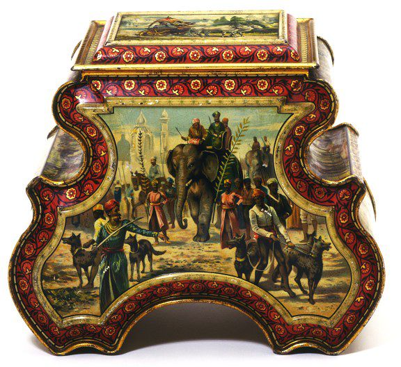Обычно печенье пекли сами или покупали вразвес или поштучно, а дома укладывали в специальные банки или шкатулки. В 1877 году был запатентован метод литографской печати на металле, и в конце 19 века появилась металлические коробочки с красивыми рисунками, их обычно покупали, как подарок и потом использовали для всяких мелочей.