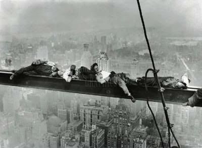 Касаемо предыдущей фотографии: я не копал глубоко, но вот в википедии пишется, что обе фотографии были сделаны 29 сентября 1932 года на 69 этаже в последние месяцы строительства Рокфеллер-центра. То есть понятно, что обед и полуденный сон на швеллере - это кадры весьма постановочные, но на упоминания монтажа я там не наткнулся. А англоязычная википедия, по моему мнению, вполне даже информативна.