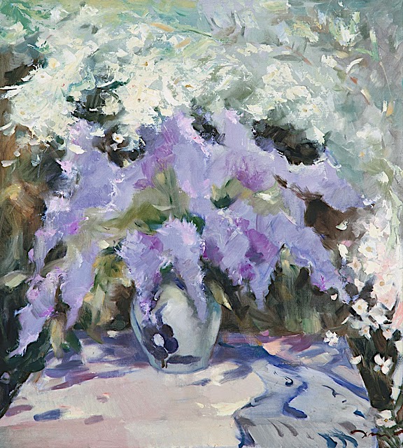 Даньшин и Пастернак. Не забывает смотреть "в трубу"!!!!  Сирень Положим, — гудение улья, И сад утопает в стряпне, И спинки соломенных стульев, И черные зерна слепней. И вдруг объявляется отдых, И всюду бросают дела. Далекая молодость в сотах, Седая сирень расцвела! Уж где-то телеги и лето, И гром отмыкает кусты, И ливень въезжает в кассеты Отстроившейся красоты. И чуть наполняет повозка Раскатистым воздухом свод, — Лиловое зданье из воска, До облака вставши, плывет. И тучи играют в горелки, И слышится старшего речь, Что надо сирени в тарелке Путем отстояться и стечь. | 6:55p |