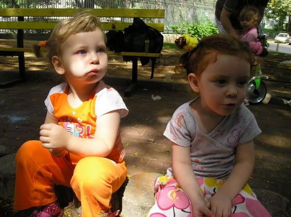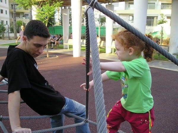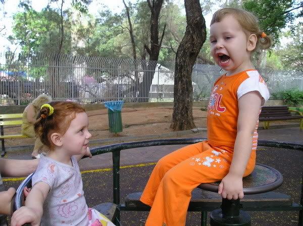 Нашла свою знакомую девочку Эрику. Другую, маме-папе на знакомую... бегала с ней, призывая ее то на горку, то под горку.
