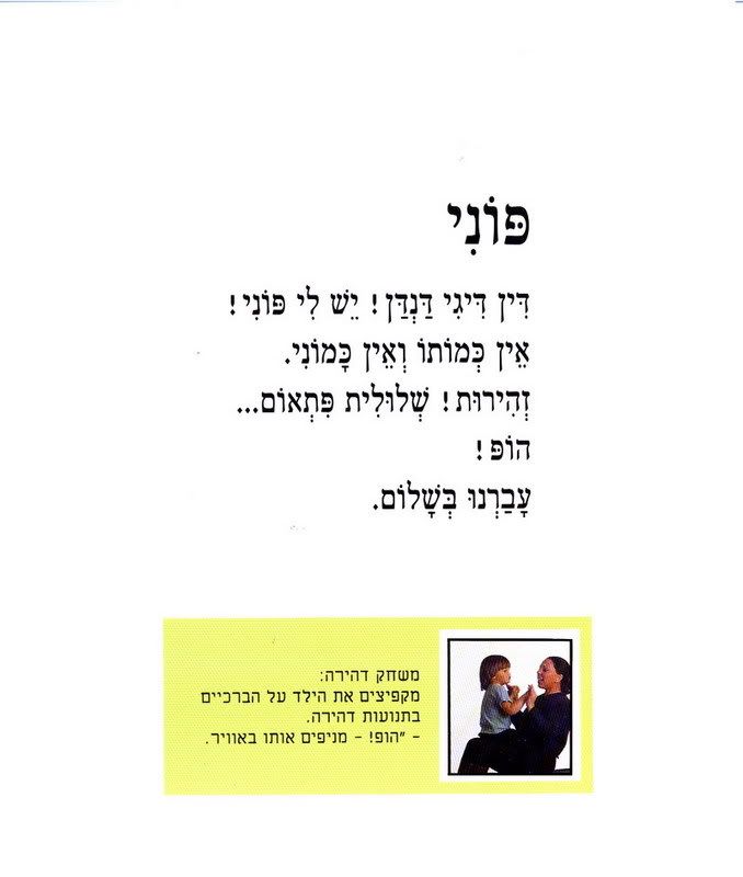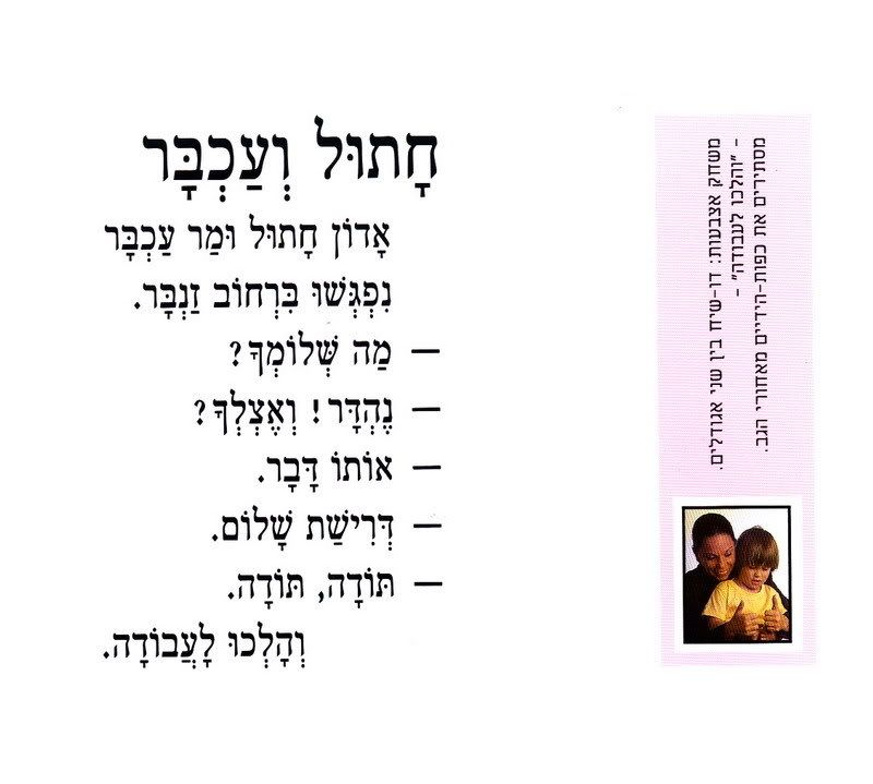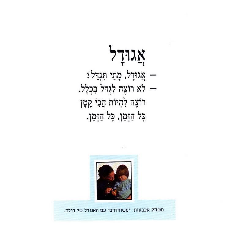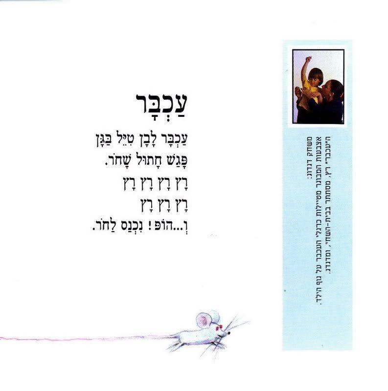 В рамках программы подготовки к ивритскому садику мы купили книжку про зайку, которая устала и хотела спать (на каждой второй картинке разворачивается дверька или окошко), купили книжку, которую я могу читать в слух (либо у меня улучшился иврит читальный:) либо отпустило на счет комплексов чтения вслух не на русском:)) и которой мне хочется поделиться