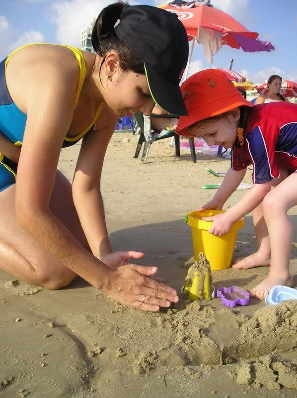 Часть вещей из рюгзака перекинула к Стасу, который еще был недоволен, что по его душу я не взяла одежку запасную (ага, так и тусовался на пляже в своих офисных туфлях:) плавки-то я взяла, а майку с шортами уже было не куда класть:))). Коляску тоже Стас катил. Полинка задремала. Шли себе по злачным местам южного Тель Авива, не отсвечивали:)