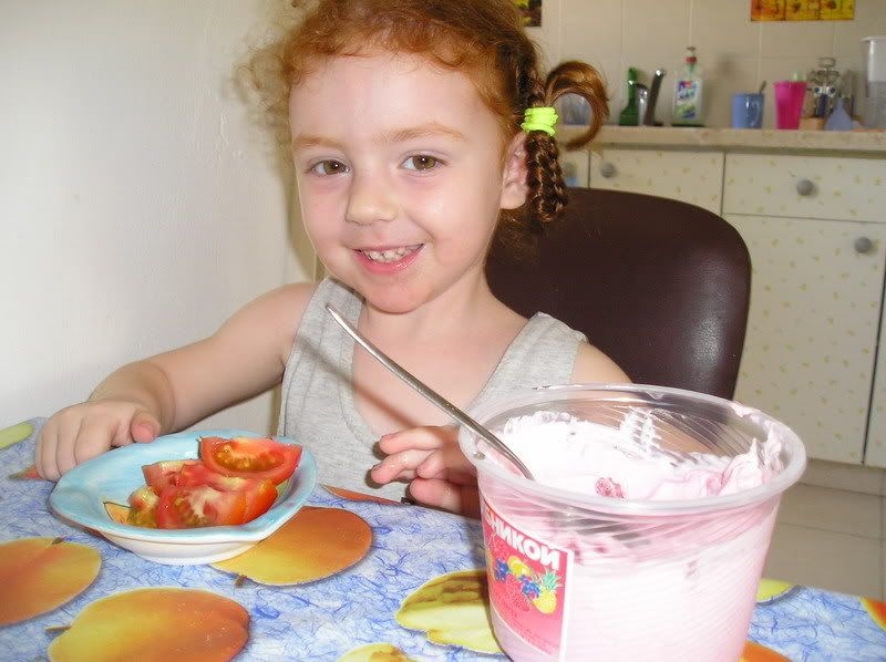 Агавния и прочие удовольствия У нас тут гастрономическое событие: Полина стала кушать помидорки (агваниет на иврите). Называет она их немного по-своему: "Агавния". Выедает только мякоть, шкурку не ест. Удивительно, что уже неделю (праздничную:), когда сад то работает, но не работает) говорит, что ест помидорки каждое утро в саду. Мы ей конечно верим, но не полностью:) Вчера забирали ее из сада, и воспетка торжественно объявляет: "Сегодня Полина первый раз ела помидор"!!!:))) получается, что она неделю морально готовилась, даже в субботу дома поела вот : ![]() ![]() Удовольствие не гастрономического характера - Полина справляется сама. С ней можно не играть, главное подкидывать ей идеи чем бы заняться. Категорически требуется только чтение, рассказывание историй во время кормления и перед сном, а также совместное время на площадке, а дома она в основном справляется сама. Вот так ![]() ![]() |