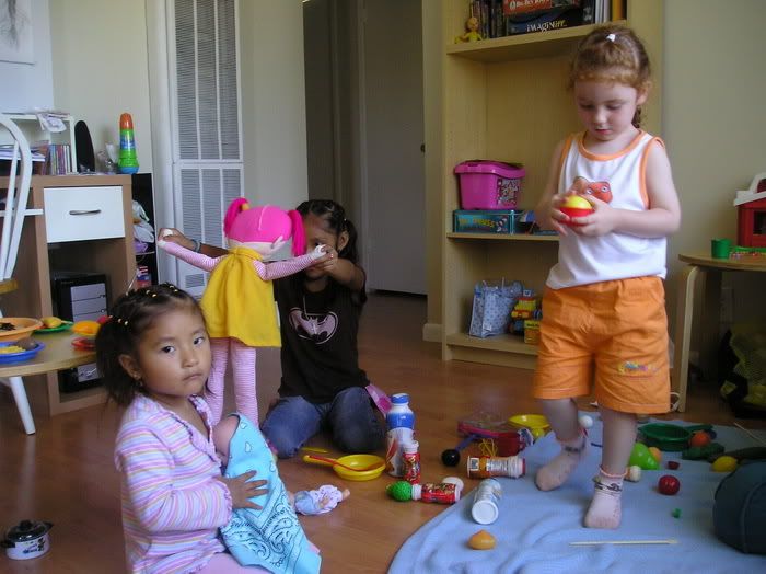 С девочками легко: они играют, танцуют, ничего друг у друга не отбирают, вообще они замечательные подружки! Жаль только они мало говорят между собой... видимо, все таки их английский (и соседок и Полин) не на столько хорош, а испанским они с Полиной не пользуются, только изредка...