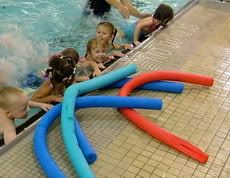 конец недели, а мы больные;( несмотря на расстройство животов, сходили без жертв в бассейн в четверг (Полина глядя на друга Сеньку научилась прыгать с бортика не с положения сидя, и свободно владеет спасательной колбасой на воде;))... (на фото видно что за колбаса, но дети чужие;) фото нашел гугл