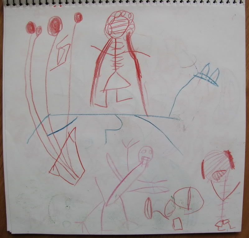 рисунки Полинки тема скелетов имеет продолжение (рисунок со скелетом лошади был нарисован в альбоме, поэтому претерпел некоторые изменения):