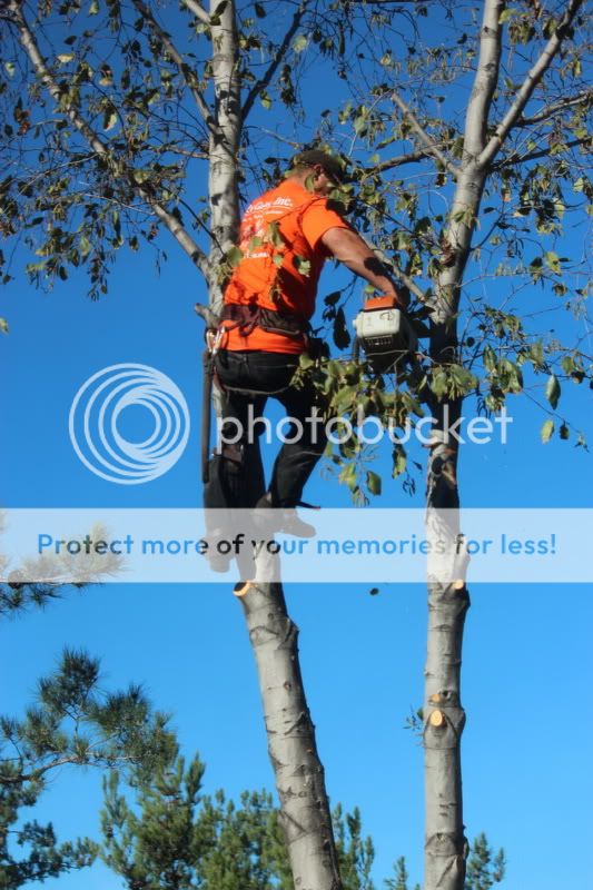 интересным показался процесс... даже Стас смотрел и на работу опоздал;) нуу, на самом деле лестницу из дома завалило ветками и мы поняли, что работы не надолго, поэтому не стали тревожить работника, а она пилил ну минут 10-15 всего, потом слез и все убрал...