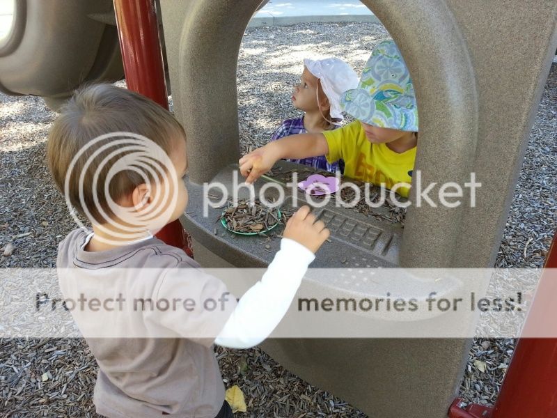 корзинка с игрушечными продуктами под рукой, дети взяли себе мягких игрушек (у Евы был зайка икеевский;) а у Вики белый мишка) и стали мягких игрушек кормить.
