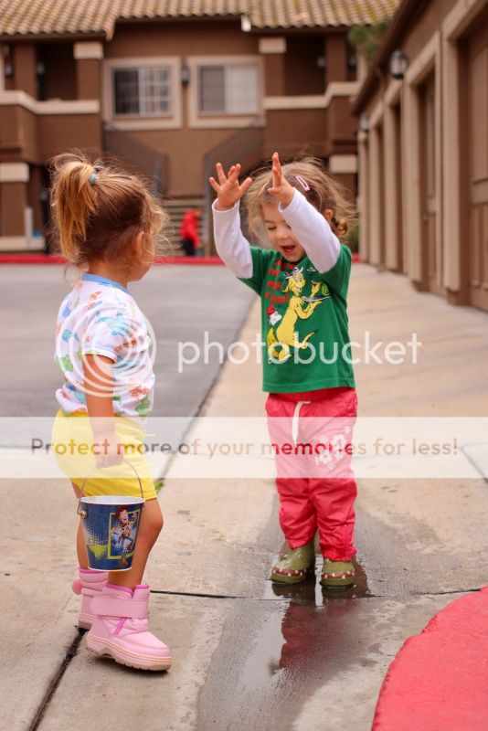 вообще на улице у Евы случился один раз кризис личности, но я не стала заострять на нем внимание, просто сердито сказала Еве, что к ней пришли друзья, и с друзьями надо вместе играть. Вроде как дошло и Евуха даже за помощью к Лизе обращалась, когда надо;))