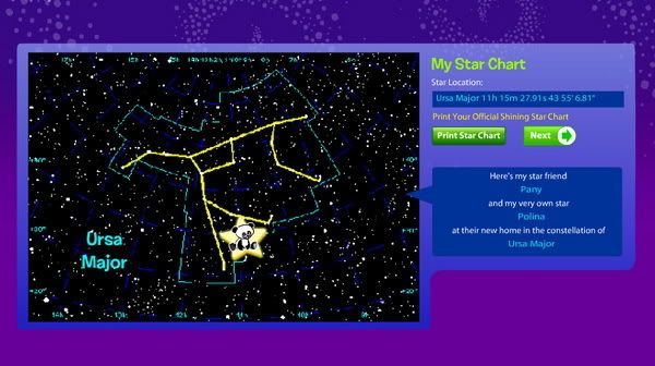 В итоге я подарила Полине не только панду (ее фрагментальное изображение есть в посте про новогодний театр), я подрила ей звезду. После регистрации на сайте http://www.shiningstars.com/site.php звезда Полинкина находится в созведии Большой Медведицы и называется очень просто, по имени Польки:)