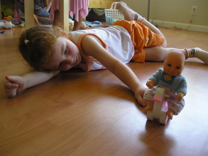 А Полина от бессилия упала на пол, да так и осталась играть лежа: