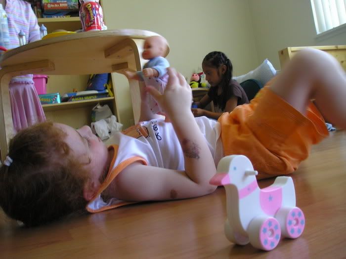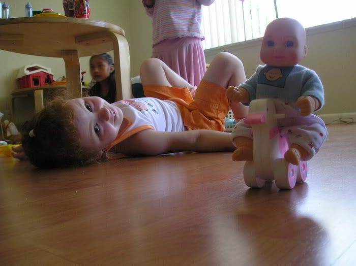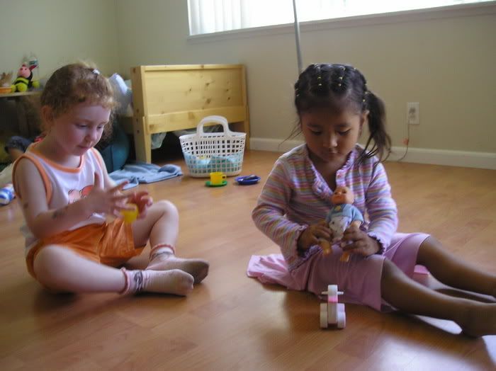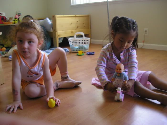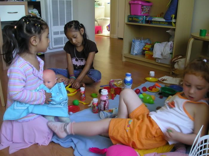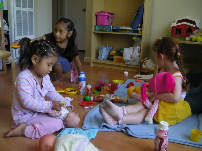 С девочками легко: они играют, танцуют, ничего друг у друга не отбирают, вообще они замечательные подружки! Жаль только они мало говорят между собой... видимо, все таки их английский (и соседок и Полин) не на столько хорош, а испанским они с Полиной не пользуются, только изредка...