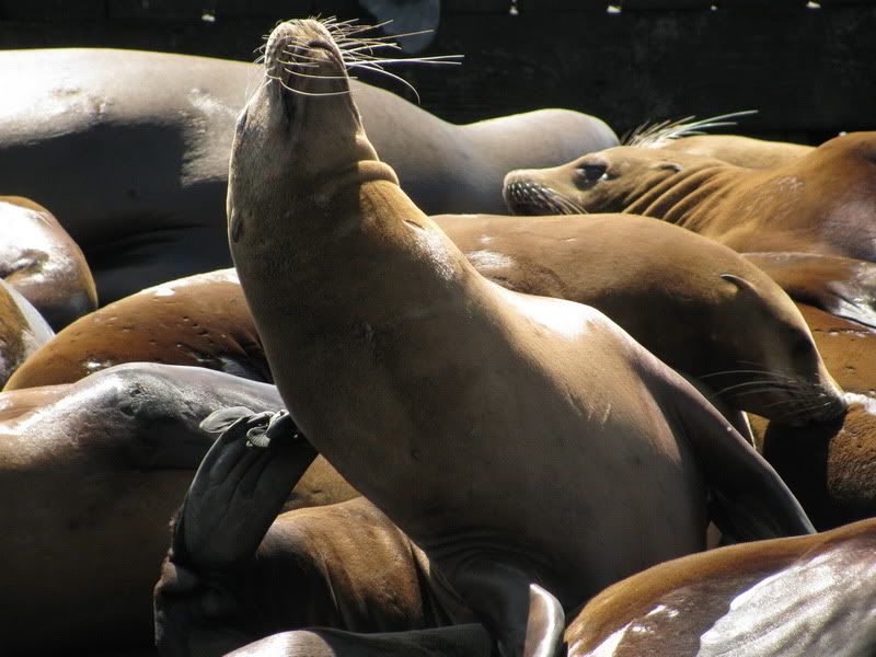 морские волки и другие картинки нашего первого вело-путешествия по СФ Сбылась мечта Ехали на поезде из нашего Mountain View велосипеды в специальном вагоне прикрепили. Там конечная - вышли удачно, последние из поезда;) Погода радовала, бодрый настрой и сбывание мечты доехать до Golden Gate моста заставляло двигаться дальше;) к сожалению, до моста мы не добрались, но добрались до 39 пирса: время провели интересно, вкусно поели, ребенка развлекли и укатали;) ![]() (сайт photobucket.com предлагает способы обработки фотографии - интересно было попробовать;)) девушка в поезде ехала и читала: ![]() по приезду в СФ все таки пришлось одеваться: ![]() для Стаса главное, чтобы голова была в тепле;) ![]() кроме нас на велосипедах было немало народу: ![]() да и вообще, гуляло много: ![]() ![]() ![]() ![]() встретились 3 морских волка: ![]() ![]() ![]() и чудесные виды на залив: ![]() ![]() (тот туман, который на втором плане ближе к вечеру окутал весь город...) пока туман не спустился было ясно и относительно тепло: ![]() ![]() такое впечатление, что посудина эта очень не надежная... кто-нить когда-нить пробовал на ней плыть?:) ![]() 39 пирс - морские львы обязательная программа усы ветром сносит;) ![]() |