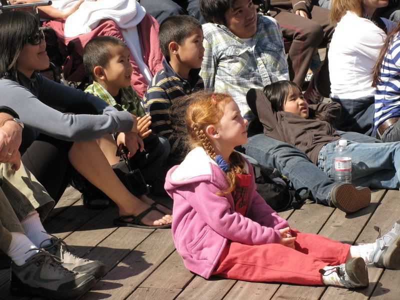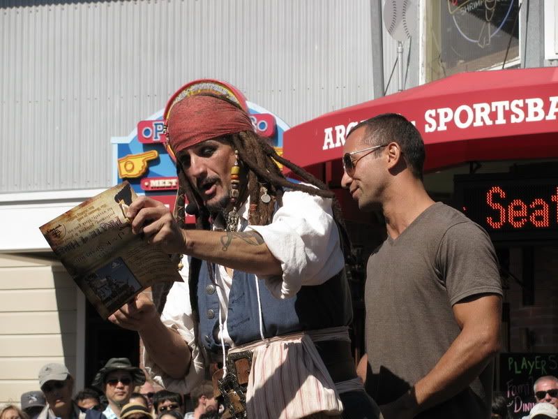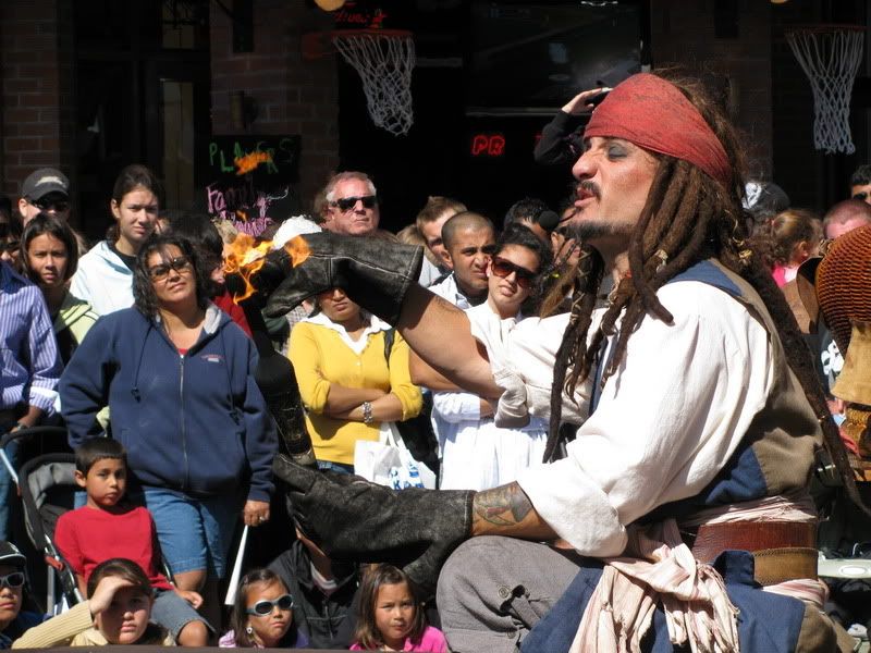 пиратское представление Джека Воробья (других не знаем:)) в СФ на 39 пирсе всегда происходит какое-нибудь представление ![]() в субботу нам попался фокусник-пират. Мы со Стасом совершенно купились на его фокус и разгадать не смогли;) Но мы-то взрослые, типа;) ![]() а вот дети - дети вообще сидели открыв рот от удивления и изумления: ![]() очень артистичный пират попался: ![]() публику дурил:) ![]() огонь у него был настоящий, возможно, и волшебство в фокусах тоже было настоящее;) ![]() ![]() деньги собирал 5 дол - сувенир, 3 дол - открытка, а дальше спасибо, что остановились посмотреть;) ![]() |
