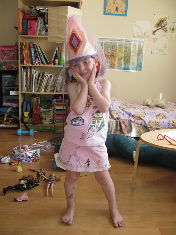 совместное наше творчество по полной программе 1. Полина (by NK & St) 2. Шапка фейская и подзорная труба разглядывать чудеса (Стас под чутким руководством По) 3. Майка (из-за пятна (опять-таки майка досталась от старших товарищей) раскрашена вручную мною - NK) 4. Юбка раскрашена Полиной;) ![]() |
