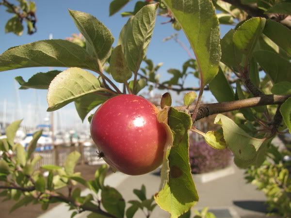 эти саусалитовские яблоки к Рош ХаШане будут в самом соку;), а пока они малюсенькие, вот такие: