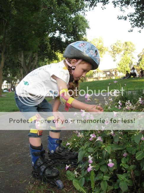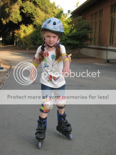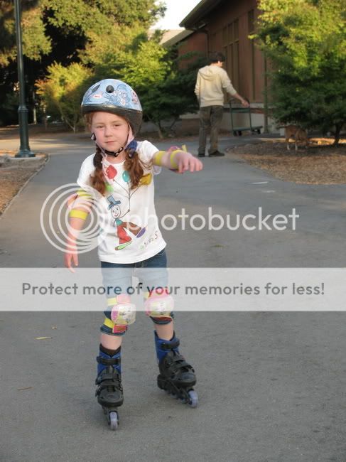 на старых роликах... /они не слишком катучие, стоит уверенно, едет боле-мене, надо ей уже купить наконец катучие;)/