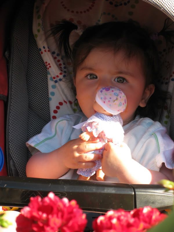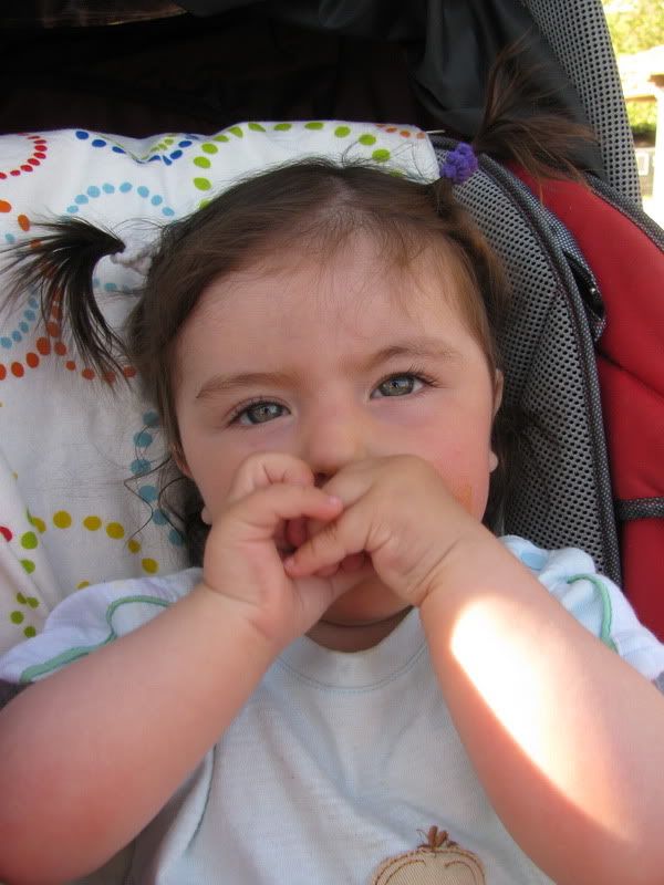 приходится завязывать ей хвостики, потому что жарко...