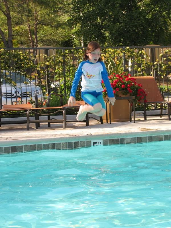 там где мелко и она сразу может встать ногами мы ей не разрешаем прыгать...