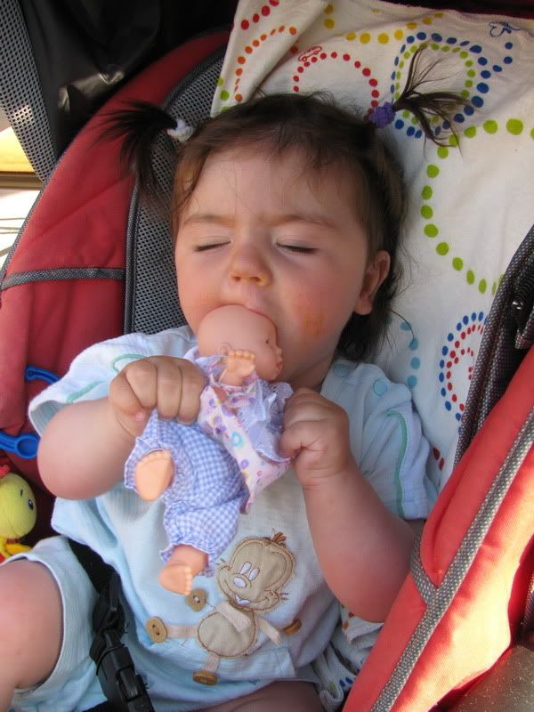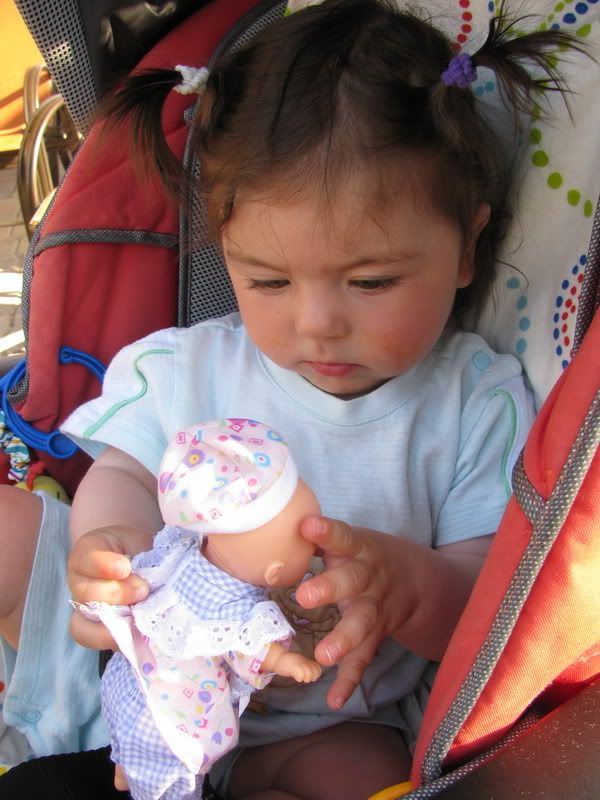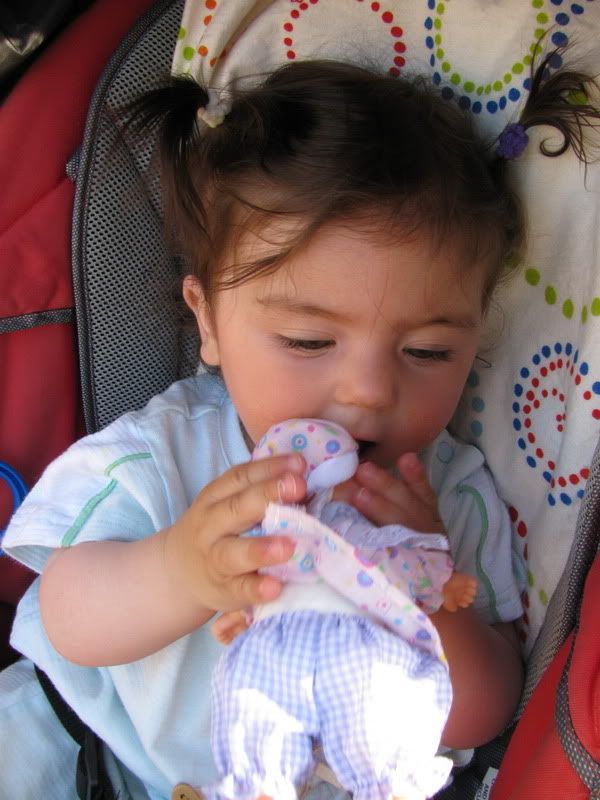 самозабвенно пыталась откусить кукле голову: