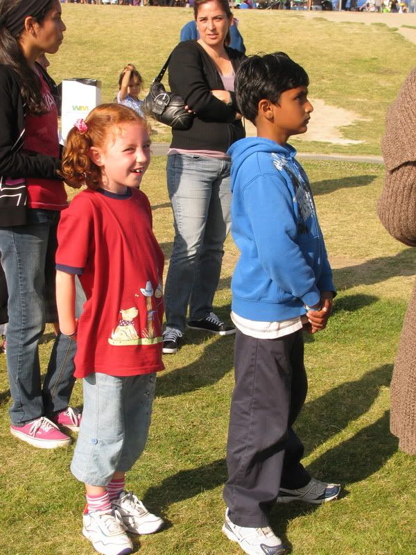 в очереди с одноклассником Шреясом. Шреяс еще и на тэквандо с ней в одну группу ходит и они очень ребята мирные, всей семьей, индуисты, Шреяс говядину не ест и на спарринг не ходит.