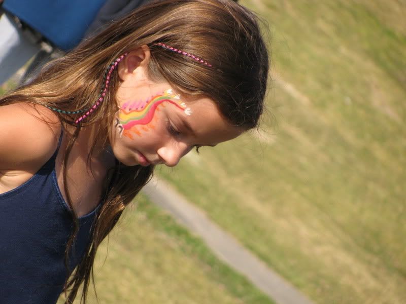 было еще развлекалово - разрисовывание лиц. Красиво. Полина ни в коем случае не соглашается - боится, что будет чесаться... было, чесалось, теперь она бережет себя;)