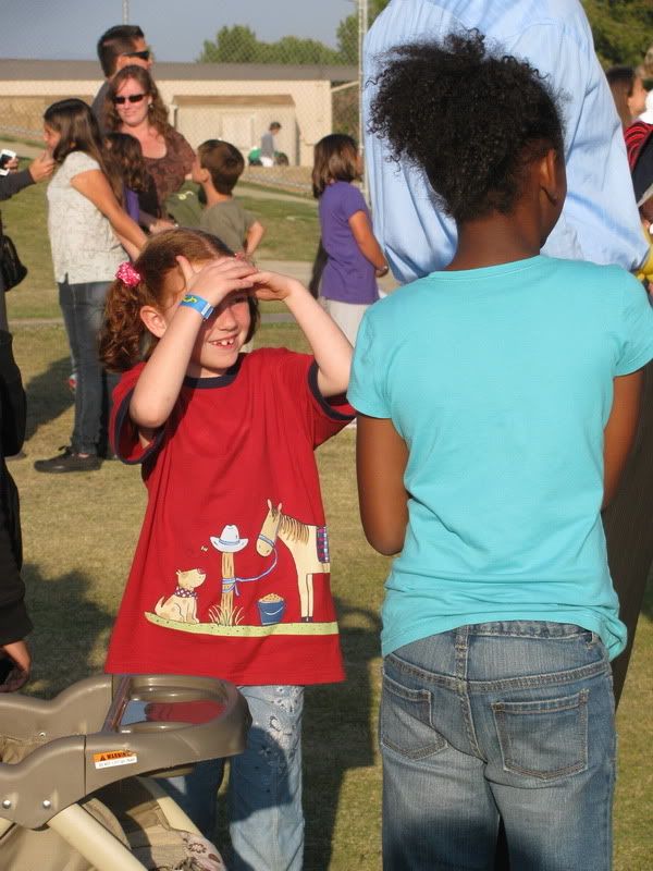 Это Полинина одноклассница тоже. одна из близняшек. или Хэйли или Джейден. они хоть и разные, но я их не различаю, зато я различаю их папу в толпе - он огромен, говорит голосом самой большой трубы в оркестре. И все время повторяет "good, good, good".