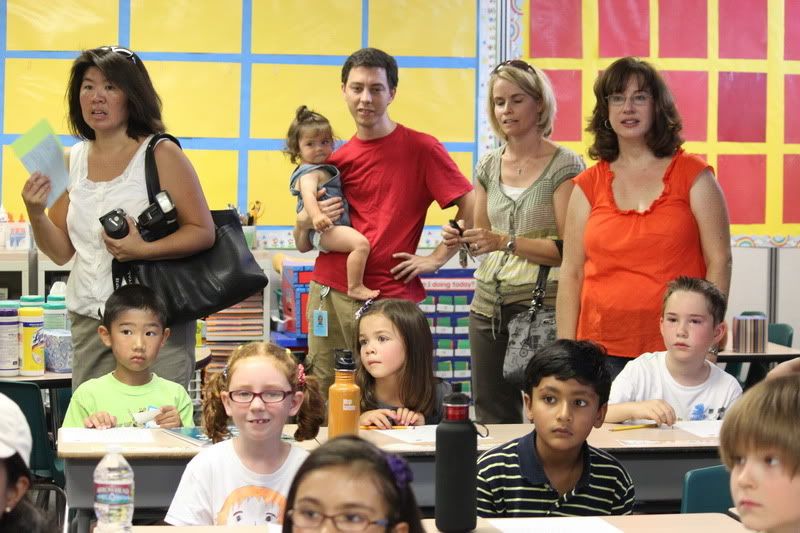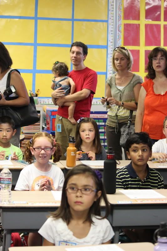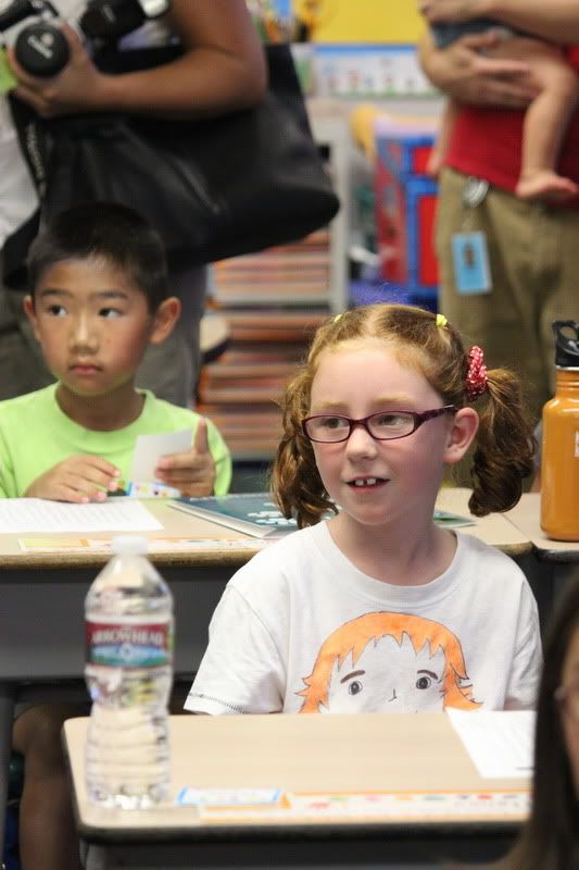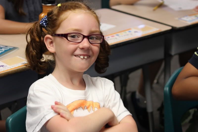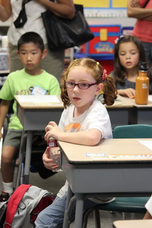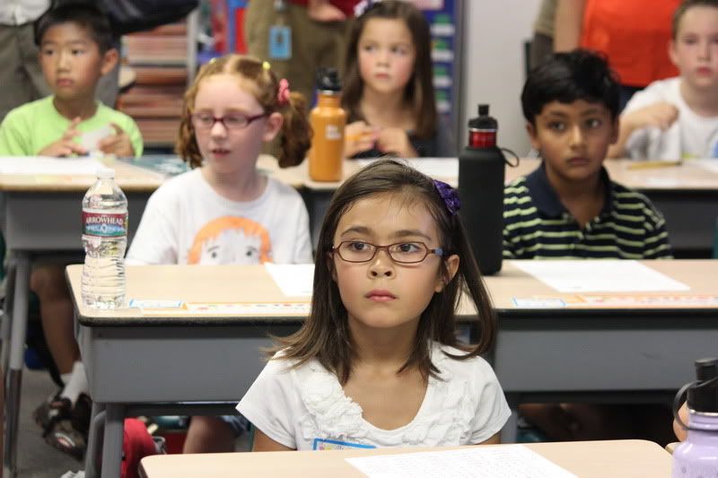 есть в классе на первый взгляд три ребенка в очках. Полина, Лина и вот еще одна девочка перед Полиной;)