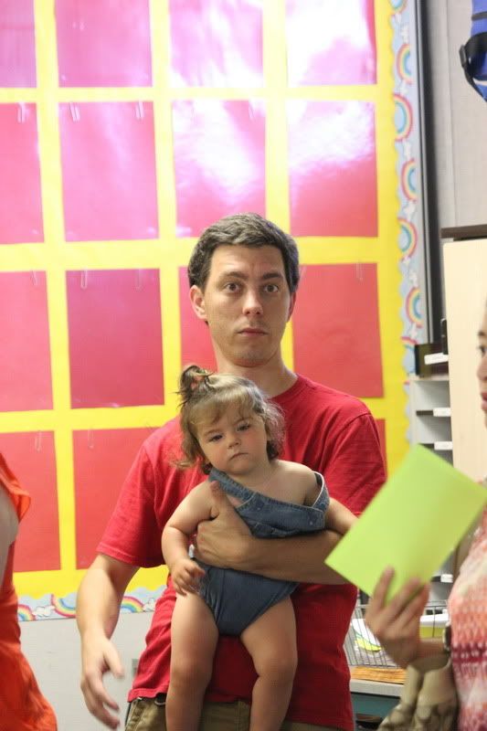 Стас удивлен и малявка растрепана;) Стас удивлен тем, что я не дала Полине толкаться и складировать ланч-бокс в большую коробку с фиолетовой наклейкой;) чего там толкаться лишний раз? я сама перед выходом без толпы тихонько положила ее сумку с обедом в общую кучу.