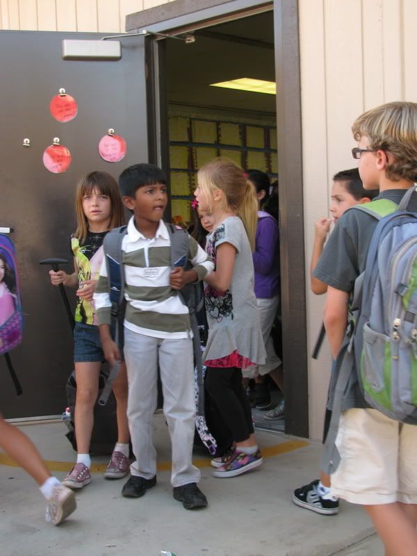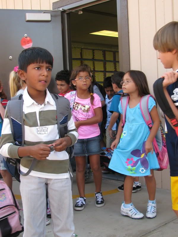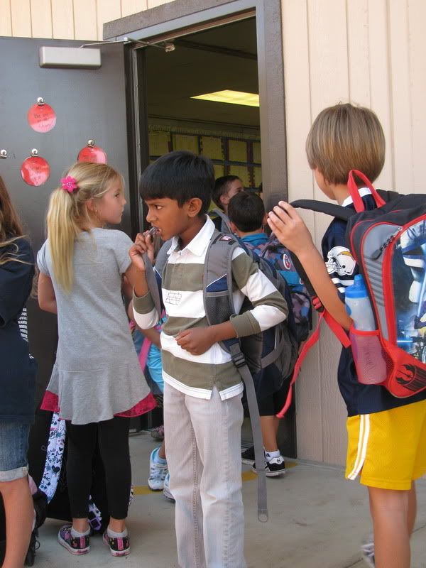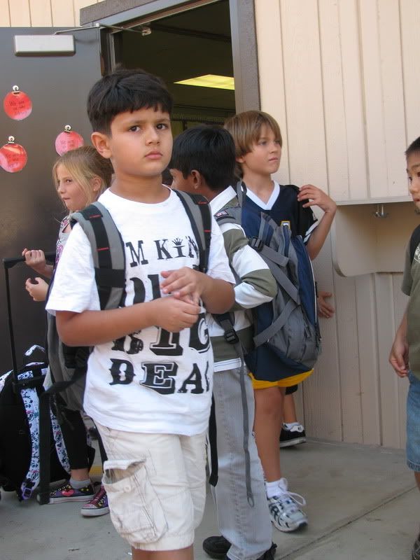 если б я в свое советское школьное прошлое увидила бы эти фотографии, я бы захлебнулась от зависти, что дети могут ходить в школу в разных майках и шортах и рюкзаки у них клевые, не то что наши портфели из ЦУМа (про мой портфель папа говорил, что в нем только кирпичи таскать;))