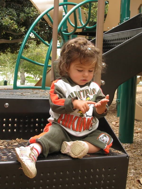 на низкие горки научилась сама забираться по ступенькам (на низкие я ее пускаю, с земли "контролирую"), разворачиваться, укладываться на пузо, выправлять ноги и ехать!:)