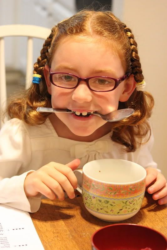 Она гордая, это первое день рождение в классе, которое празднуется угощением - до этого просто мальчика поздравили и училка разрешила всем кричать, топать ногами, шуметь и всячески go wild and crazy;)
