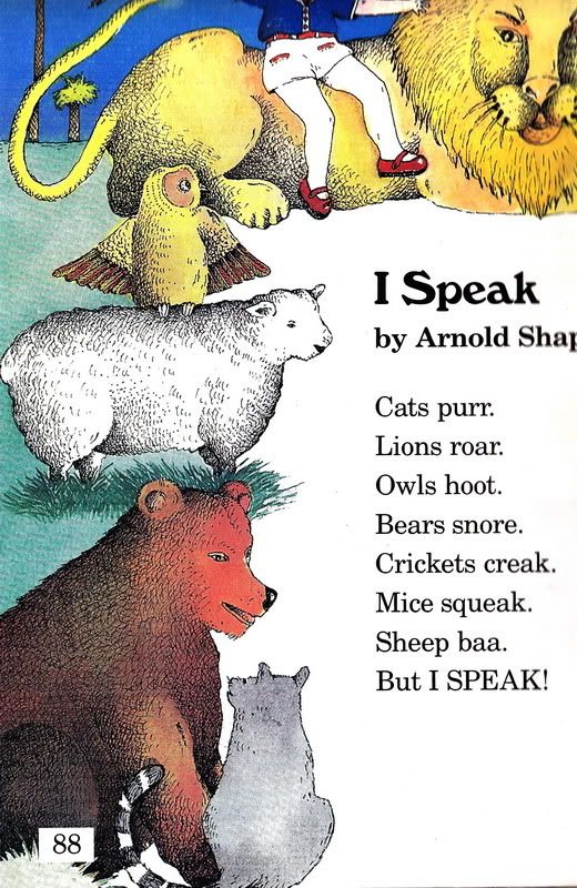 делюсь легким детским стихом /оказывается, отсканировала лист со стихом тов. Шапиро - легко учиться, польза в названиях животных и их "речи"/