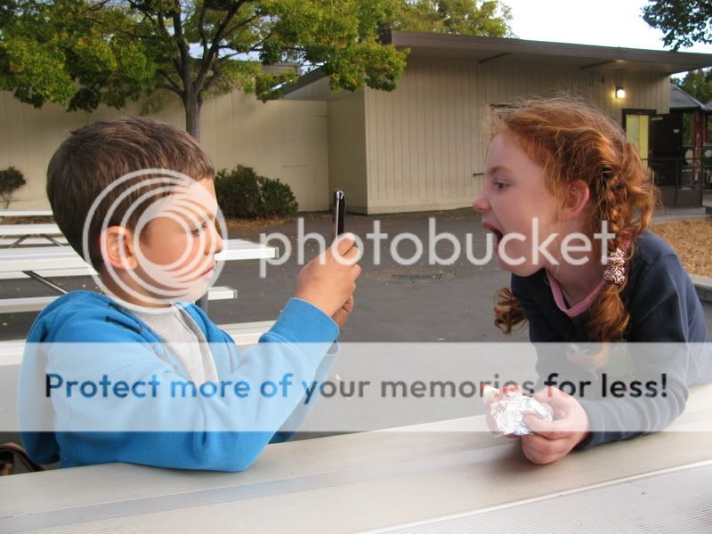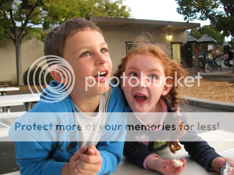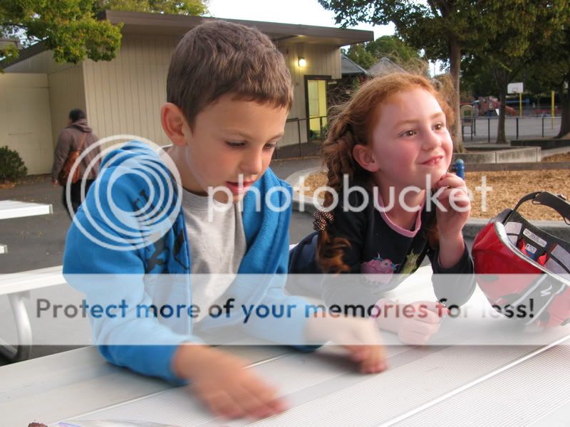 Нашлись фотографии с прошлого года - Полина и Юваль перед нашим отъездом из славного Mountain View в не менее славный Foothill Ranch. типа прощального свидания было с поеданием яблок и шоколадок, с катанием на великах и безусловно с кривлянием друг перед другом;)