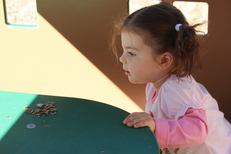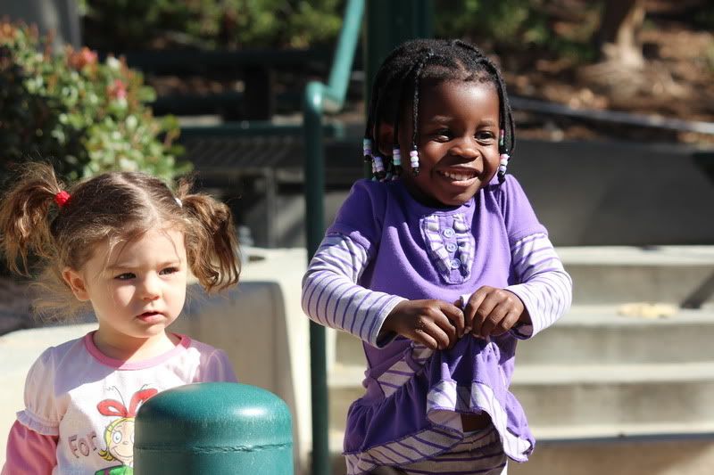 девчонка ужасно веселая, все время чего-то болтает, рассказывает. Я не все улавливаю - киваю и улыбаюсь ей;) она из тех детей, которые первому встречному всю свою историю расскажут и еще соседскую добавят;)