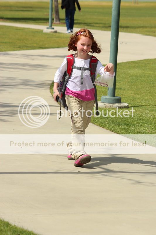 Рыжая идет со школы с поломанными очками...