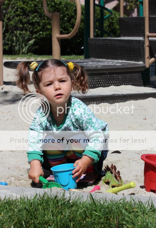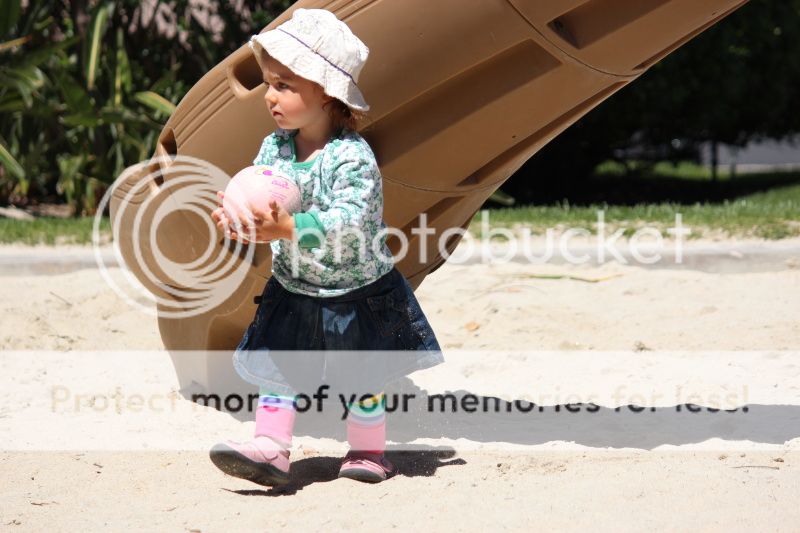 Ага, там внизу. Там буквально ноль народов и песок приятный и воды нет:-) когда мне лень ее переодевать, я ее туда качестве вниз гулять. Там и горки лазательные неплохие, Ева сама залезает и катается, как блин большая:-) на попь:-):-)