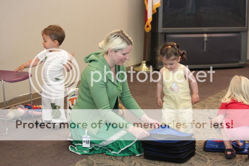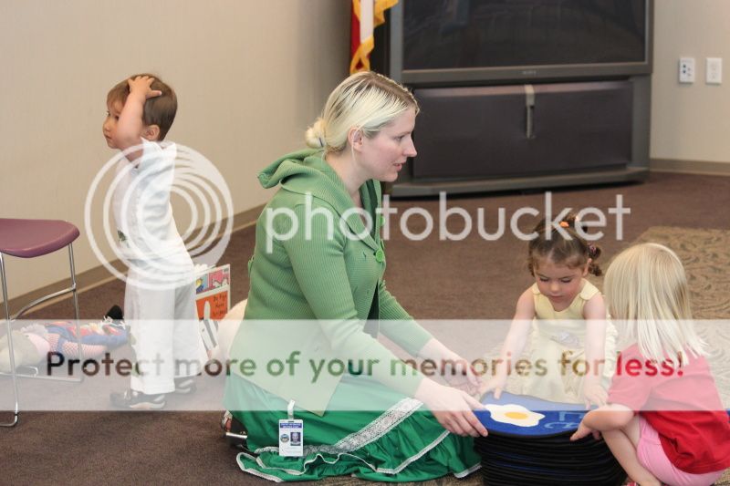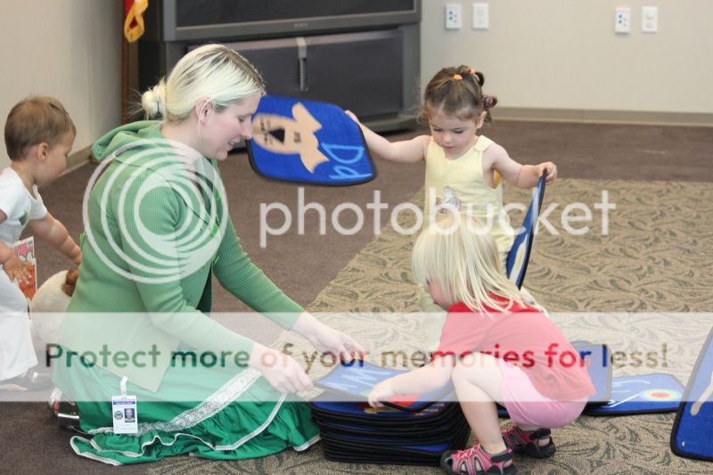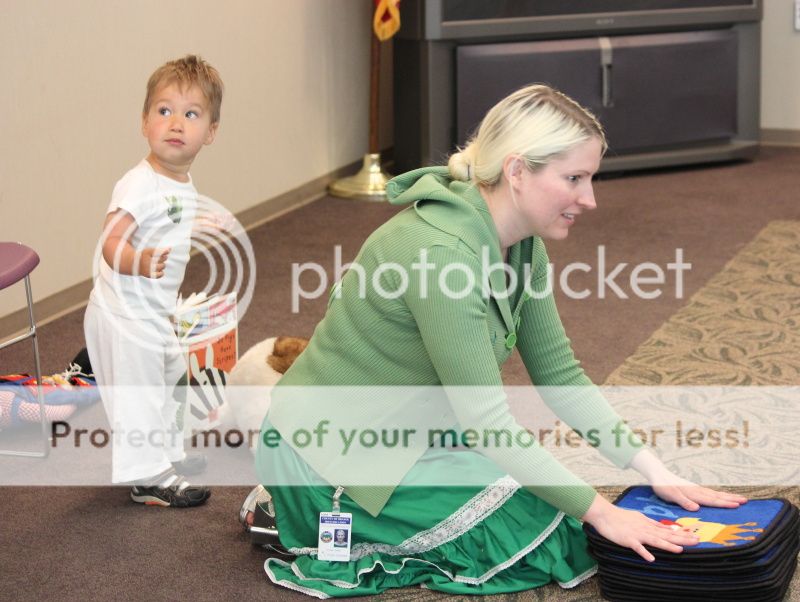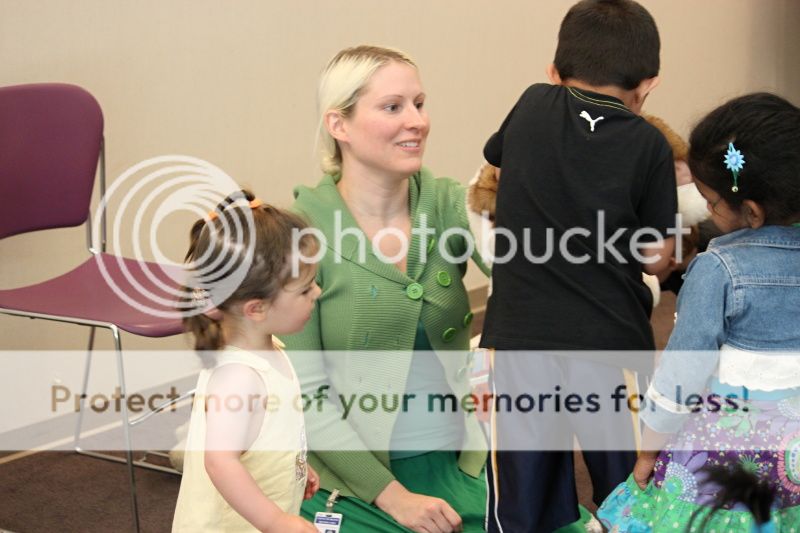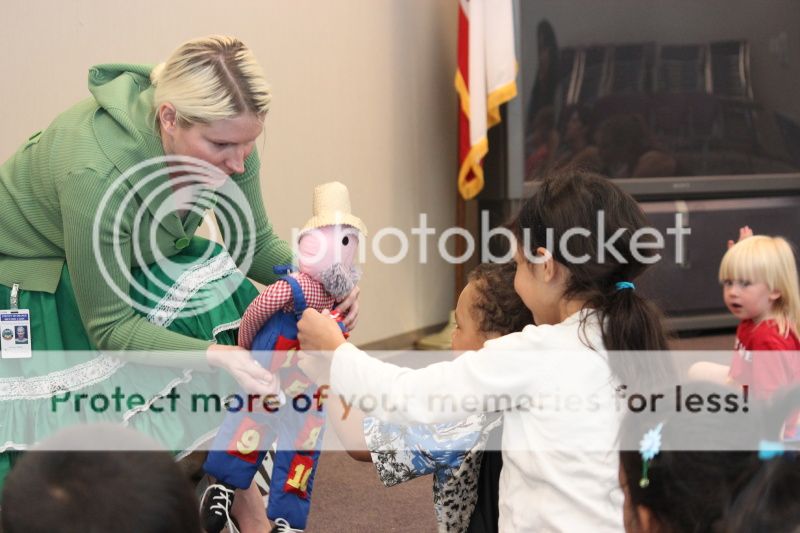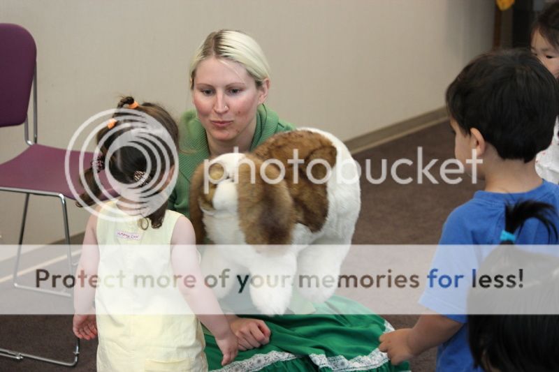 под завершение библиотекарша дает детям погладить игрушечного кролика - детям счастье и радость, как будто они настоящего кролика гладят;)
