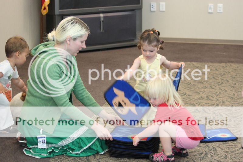 в самом самом конце детки помогают собирать коврики в стопку