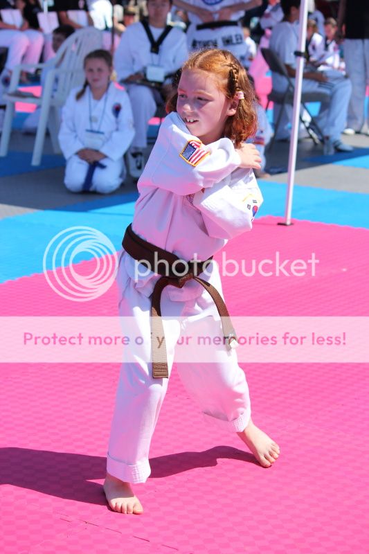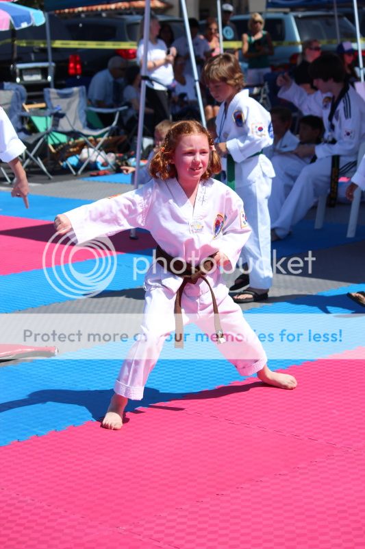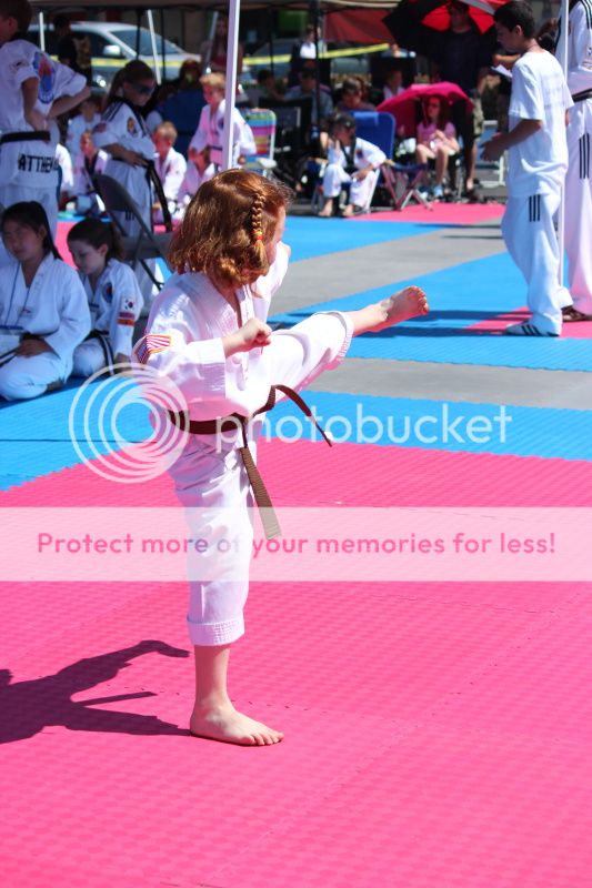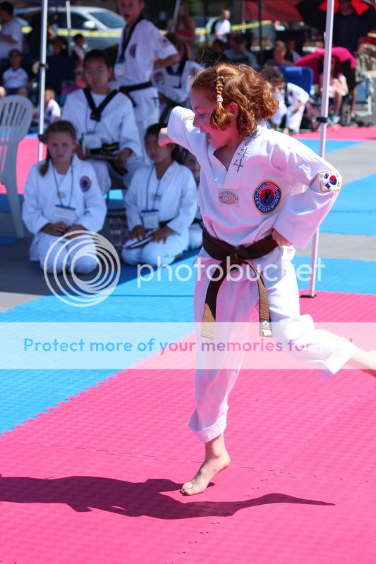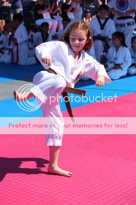 Рыжая выступает с набором упражнений ПумСэй. В этот раз у нее оно не очень зрелищное, пинков не так много, зато прыжок в конце;)