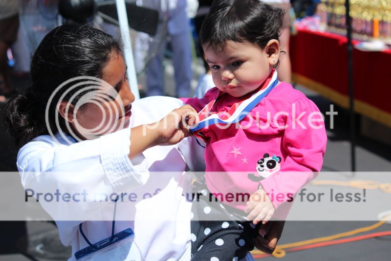 Полина и еще пара человек-детей заполнили лист наклейками, которые выдаются в замен на 5 карточек (5 посещений значит) в среднем, такой лист заполняется за год с копейкой занятий (2 или 3 раза в неделю), и получается, что примерно раз в год ребенку достается дополнительное именное награждение;)